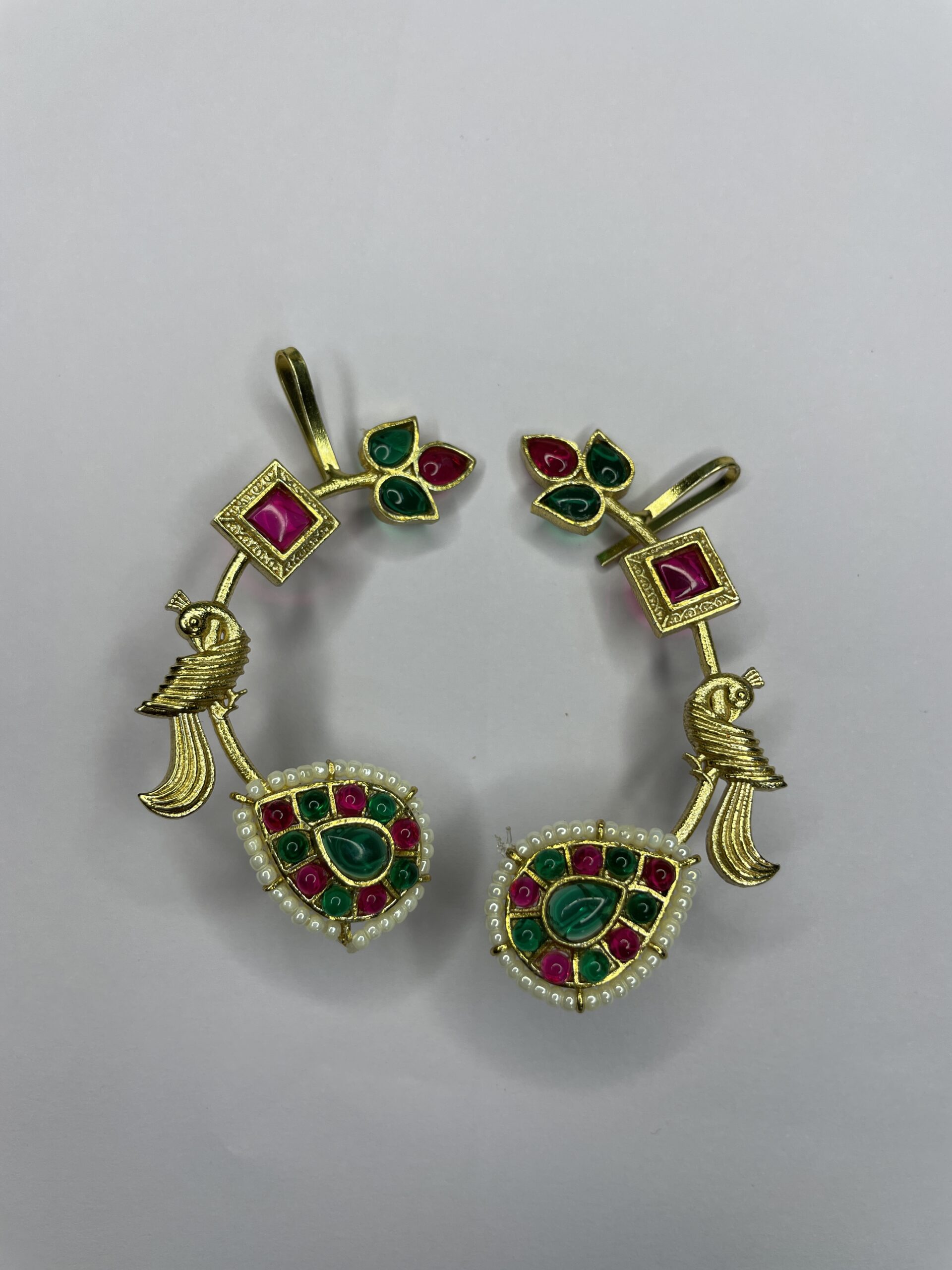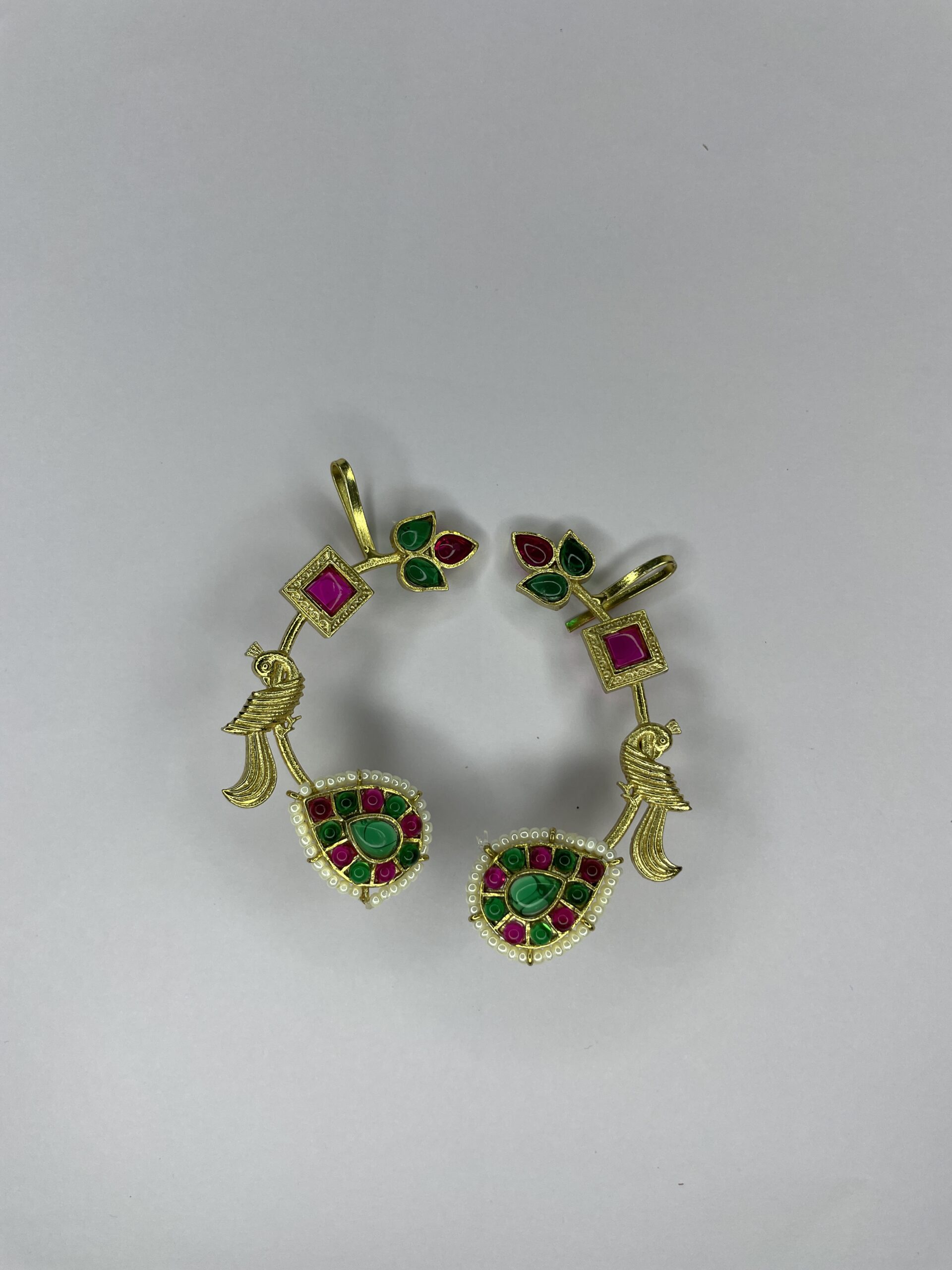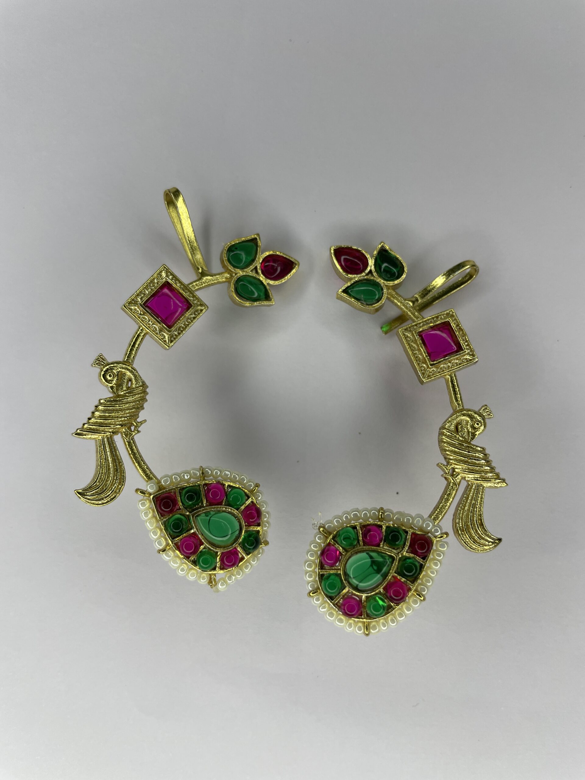 | Add a bold twist to your jewellery collection with our handcrafted fusion ear cuffs, designed to blend traditional elegance with contemporary flair. This set of two features intricate detailing and a versatile design, perfect for styling with both ethnic and Indo-western outfits. Lightweight, unique, and effortlessly chic—these ear cuffs are your go-to statement pieces for any occasion. |
