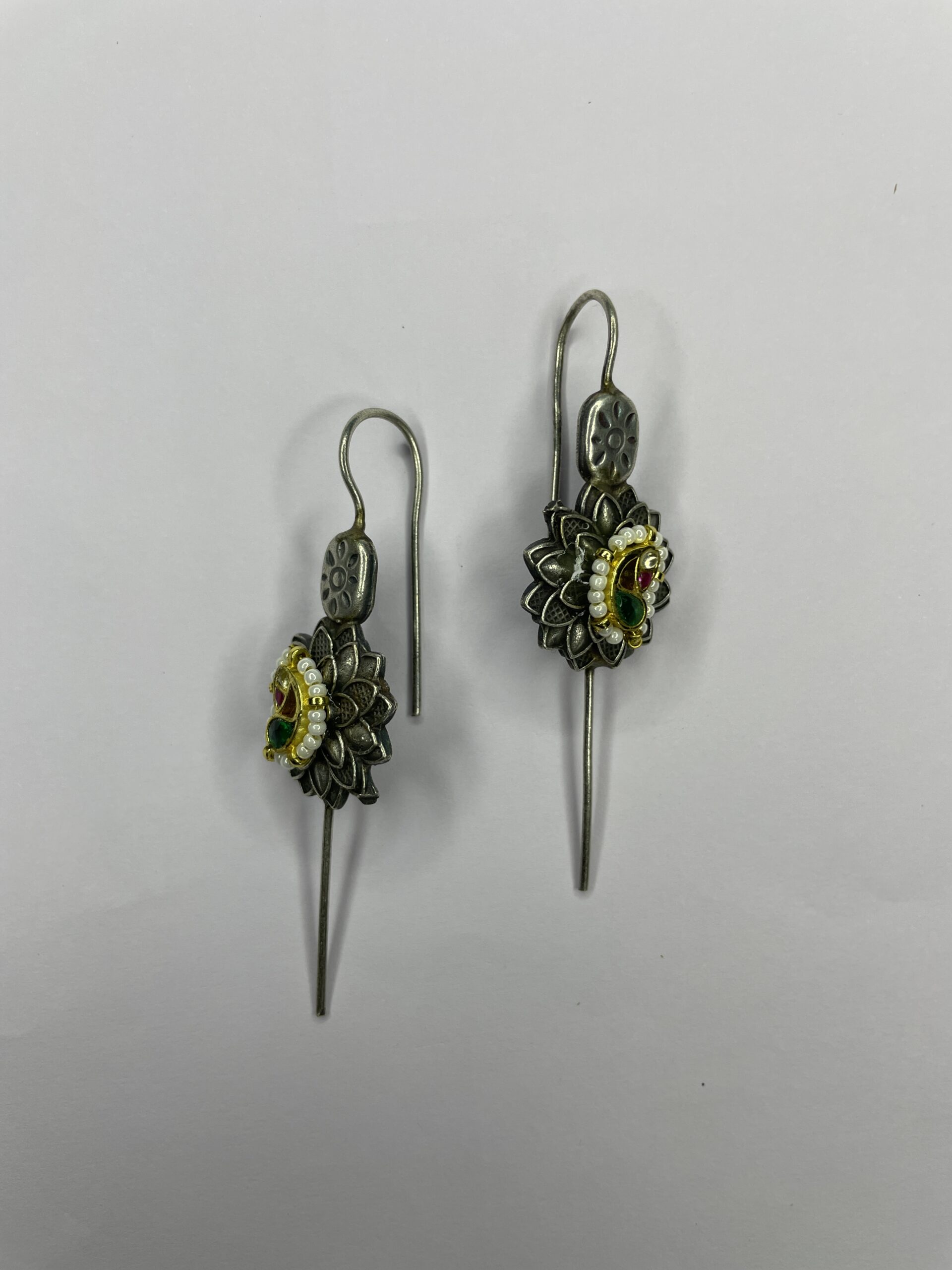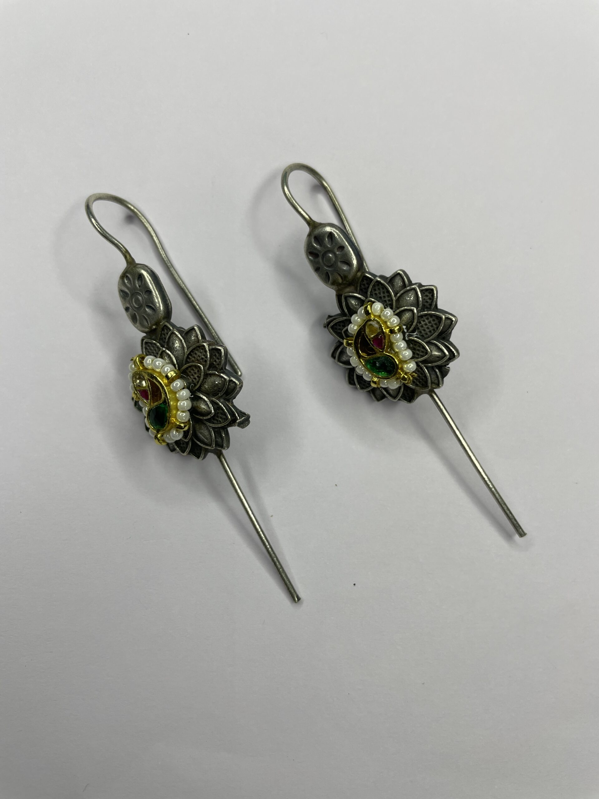 A perfect blend of bold and delicate, these oxidised ear cuffs feature a soft patch of pearls and a touch of delightful colour. Designed to hug the ear with elegance, they add a modern twist to traditional charm—ideal for both festive and everyday fusion looks.